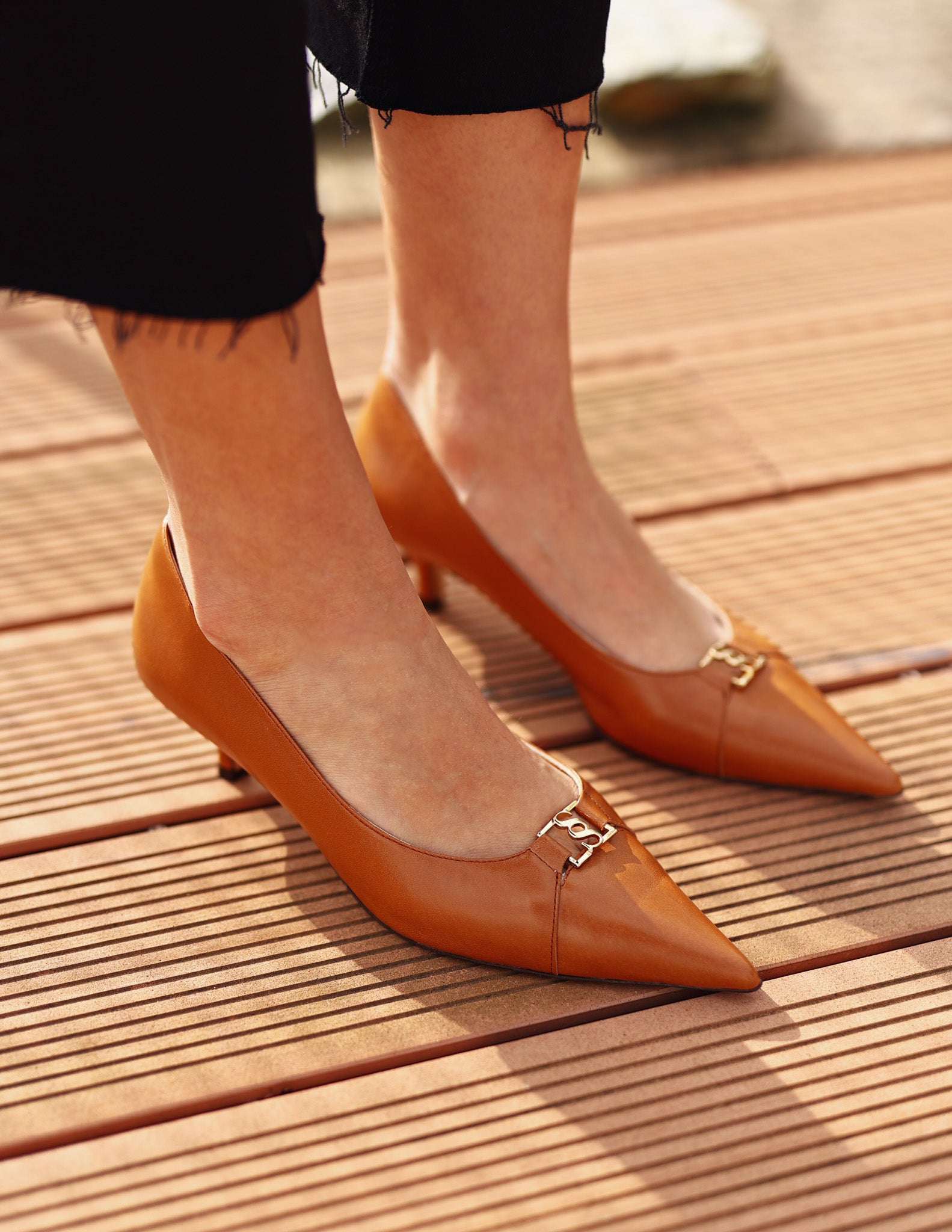 Ebony é um sapato clássico de linhas elegantes, com bico fino que alonga a silhueta e salto médio que garante conforto e estabilidade. O detalhe metálico discreto acrescenta um toque sofisticado ao design. Disponível em bege, caramelo e preto, é uma opção versátil para looks profissionais ou ocasiões especiais.